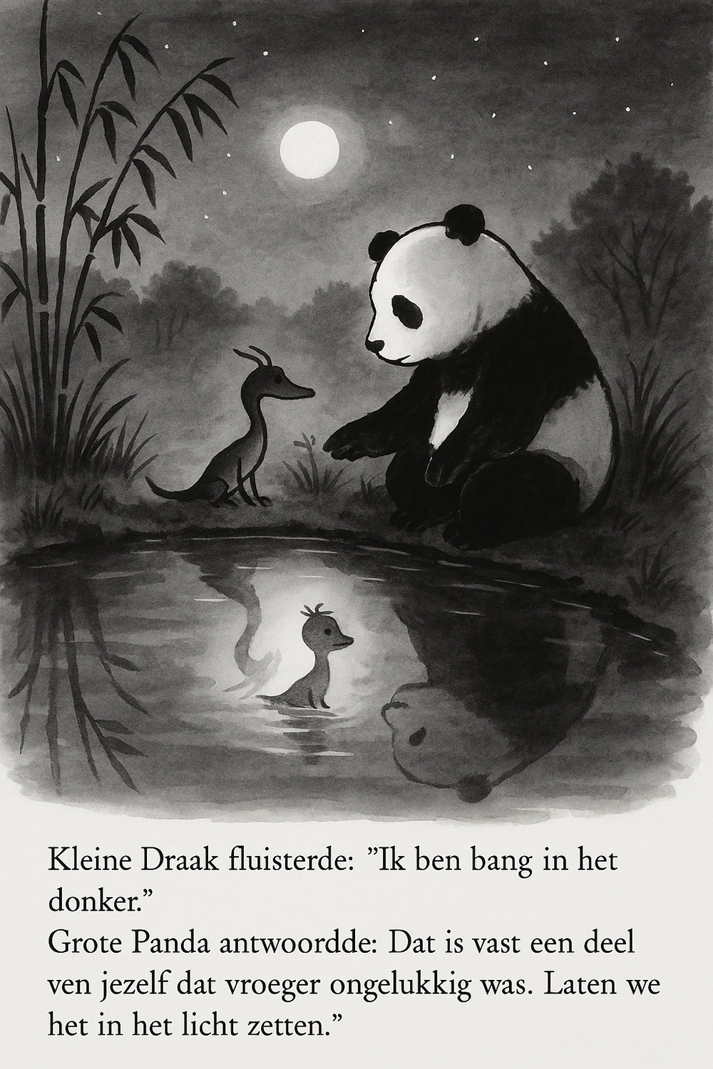 De stormlantaarn symboliseert de innerlijke volwassene die het licht draagt voor het kind dat ooit verdwaalde. Het licht staat voor aanwezigheid, voor zorg, voor de bereidheid om te blijven, ook als de wind opsteekt en de omgeving donker, chaotisch of koud aanvoelt. Het kind hoeft niet te weten waarheen; het hoeft alleen te voelen dat er licht is, dat het niet meer alleen door het donker hoeft.